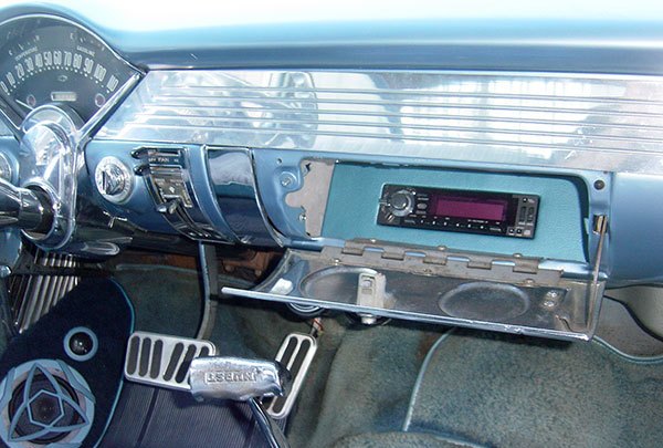 Chevy-Shoebox- (4) back to article Chevy Shoebox with a New Sound System! This Tri 5 has a Kicker sound system, and in the dash hides a Kenwood radio. Read More
