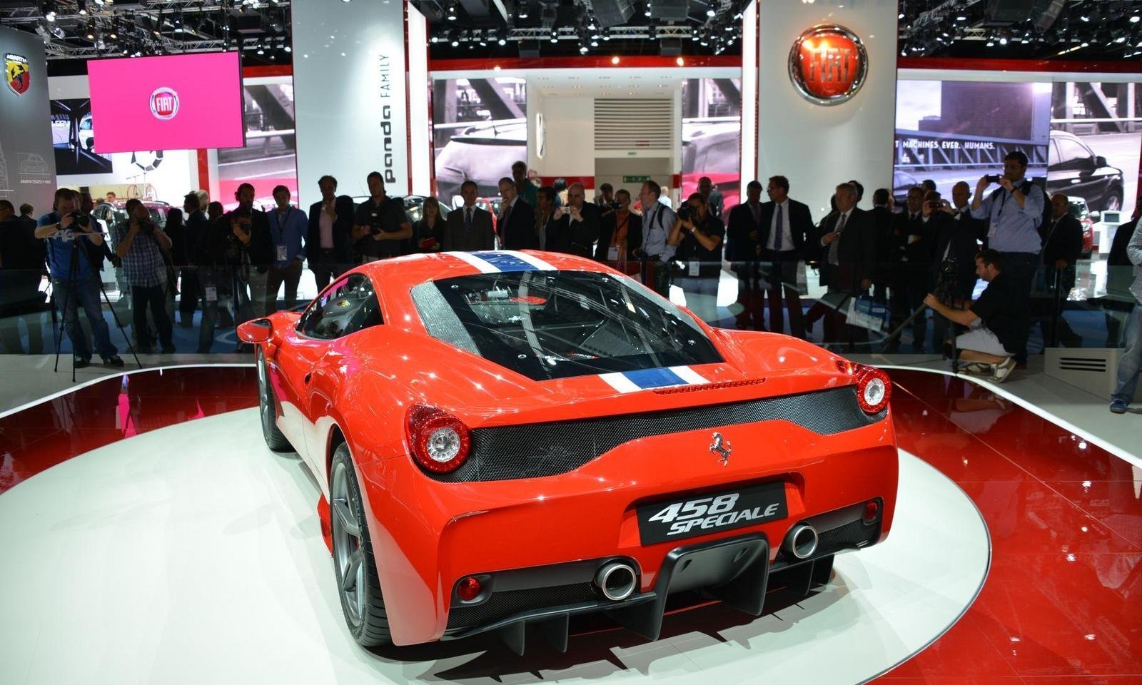 Ferrari-458-Speciale-8 back to article Video: Ferrari 458 Speciale Testing At Fiorano The Ferrari 458 Speciale premiered at the 2013 Frankfurt Motor Show. Under the hood of this machine, there is powered a naturally-aspirated 4.5-liter, V-8 engine that produces a total of 596 horsepower at 9,000 rpm and 398 pound-feet of torque ... Read More